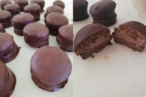 Λιώνουμε 250 γρ κουβερτούρα σε μπεν μαρί και προσθέτουμε τρεις κουταλιές της σούπας ηλιέλαιο. Ανακατεύουμε καλά, βουτάμε τα γλυκά μας και στην συνέχεια τα βάζουμε στο ψυγείο.