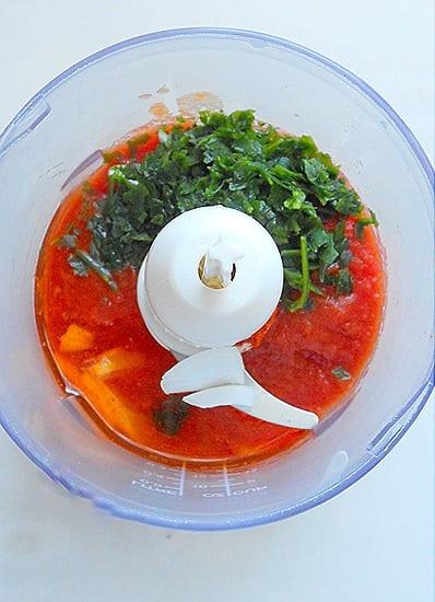 Βάζουμε στο multi όλα μαζί τα υλικά εκτός από τη φέτα και χτυπάμε για λίγο.
