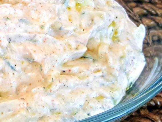 Ενα dip Με βάση στραγγιστό γιαούρτι, το οποίο αντικαθιστά ισότιμα τη μαγιονέζα, το τυρί κρέμα, τη ρικότα ή οτιδήποτε άλλο χρησιμοποιείτε σαν βάση στα ντιπς σας, ενώ έχει πολύ λιγότερες θερμίδες και πολύ περισσότερο ασβέστιο. Το γιαούρτι είναι, επίσης, άριστη πηγή ζωικών πρωτεϊνών υψηλής βιολογικής αξίας, οι οποίες είναι περισσότερο εύπεπτες από εκείνες του γάλακτος.