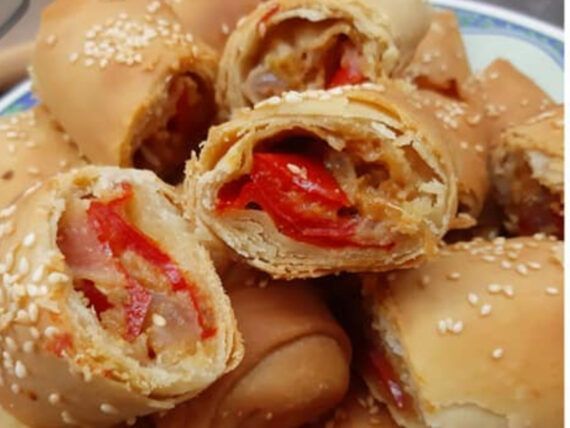 Δείτε παρακάτω την εκτέλεση για τη ντοματόπιτα σε ρολάκια: