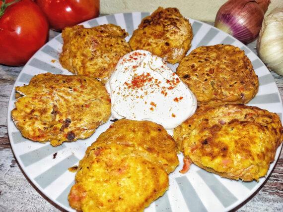 Τηγανίζουμε τα ντοματοπιτάκια για 3-4 λεπτά από κάθε πλευρά για να ροδίσουν. Αφαιρούμε από το τηγάνι και σερβίρουμε με στραγγιστό γιαούρτι και επιπλέον καπνιστή πάπρικα. Μπορούμε να χρησιμοποιήσουμε και φρέσκια ντομάτα τώρα το καλοκαίρι
