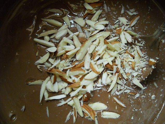 προσθεστε στο μείγμα τα ψημένα ψιλοκομμένα αμύγδαλα