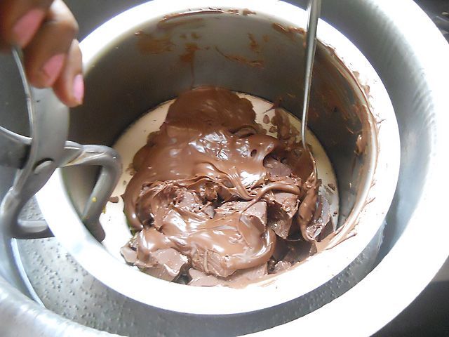 Λιώστε σε μπεν μαρυ τη σοκολάτα και προσθέστε και τη nutella