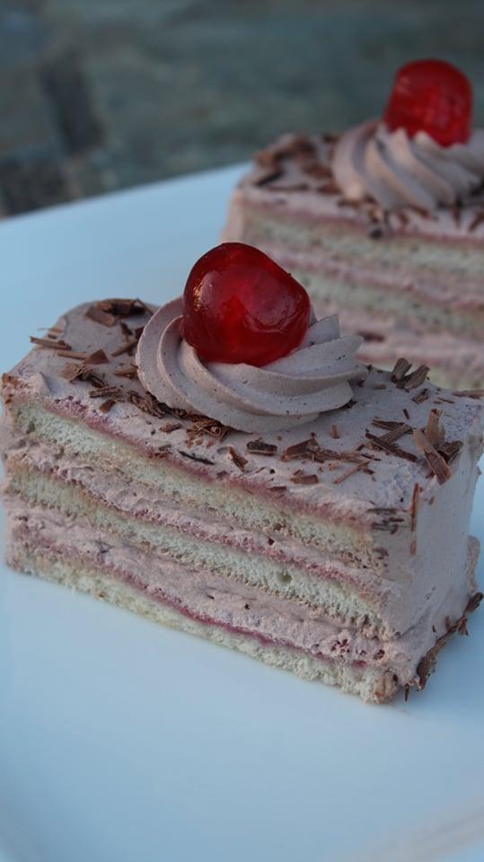130 ml vegan whipping cream 3 tbsp. powdered suagr 1 tbsp. cocoa powder -1 vanillia powder pomegrante juice 3 pieces white bread