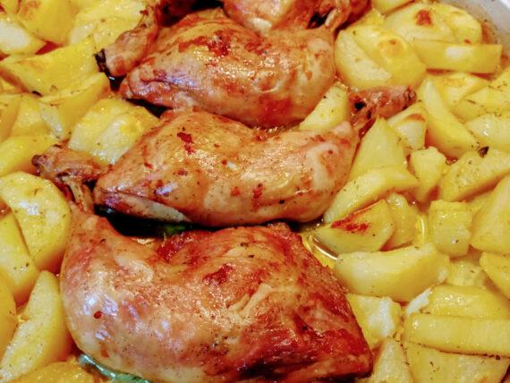 Είναι ένα εύκολο, μαμαδίστικο φαγάκι, ιδανικό για μικρούς και μεγάλους, αφού η προετοιμασία είναι γρήγορη και εύκολη και μετά αφήνεις τον φούρνο να κάνει την δουλειά του. Σήμερα φτιάχνουμε λεμονάτα μπούτια κοτόπουλο με πατάτες για το ολοήμερο και το Κυριακάτικο τραπέζι.