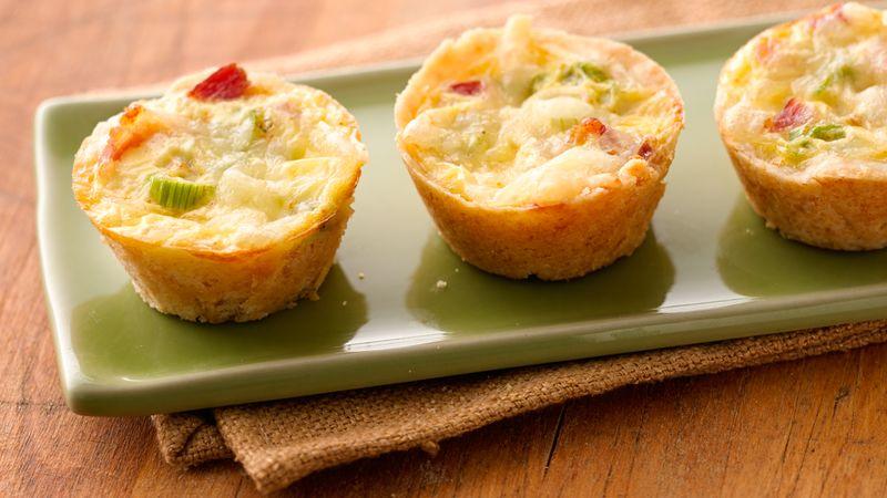 Σε ένα μπολ ανακατέψτε τα αυγά, το γάλα, το αλάτι και το πιπέρι μέχρι να φτιάξετε ένα μαλακό μείγμα. Αφήστε στην άκρη. Βγάλτε από το ψυγείο το ένα κομμάτι της ζύμης και ανοίξτε το σε μια καλά αλευρωμένη επιφάνεια. Με ένα κρασοπότηρο ή με ένα κουπάτ κόψτε μικρά κυκλάκια. Τοποθετήστε τα στα φορμάκια και γεμίστε τα με μια κουταλιά από το μείγμα με το σπανάκι και με ένα κουταλάκι από το μείγμα με το αυγό από πάνω. Γαρνίρετε με λίγο τσένταρ. Ψήστε στο φούρνο για 15-20 λεπτά ή μέχρι το φύλλο να αρχίσει να χρυσίζει και το αυγό να γίνει καλά. Επαναλάβετε και με την υπόλοιπη ζύμη.