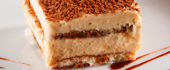 Απλώνετε την κρέμα πάνω από το παντεσπάνι, πασπαλίζετε με το Κακάο και γαρνίρετε με το Σιρόπι Καραμέλα
