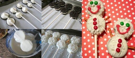 Εκτελεση. Ανοίξτε τα μπισκότα, βάλτε ξυλάκια για γλυφιτζουρια και ρίξτε λίγη λιωμένη κουβερτούρα να κολλήσουν.