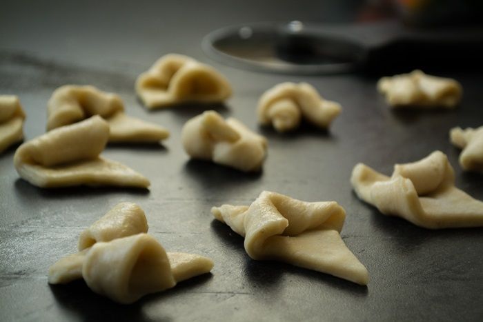 Περνάμε μέσα στην σχισμή την μια άκρη της ζύμης, φτιάχνοντας «αυτάκια».