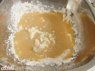 Προσθέστε το συμπυκνωμένο γάλα και χτυπήστε μέχρι να σχηματιστεί μια κρεμμώδες κρέμα .