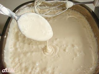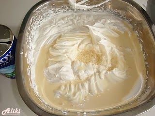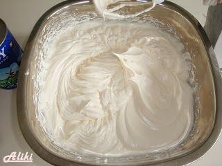 Χτυπήστε την κρέμα γάλακτος σε σαντιγί .