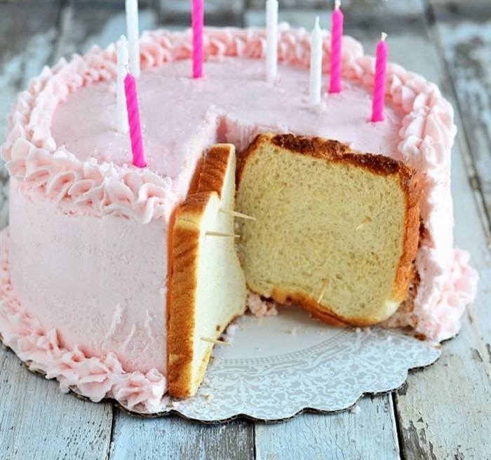 Κρατήστε τη τούρτα φρέσκια Στα σημεία που έχετε κόψει κομμάτι της τούρτας, τοποθετήστε δύο φέτες ψωμί του τοστ και στερεώστε τις με οδοντογλυφίδες.
