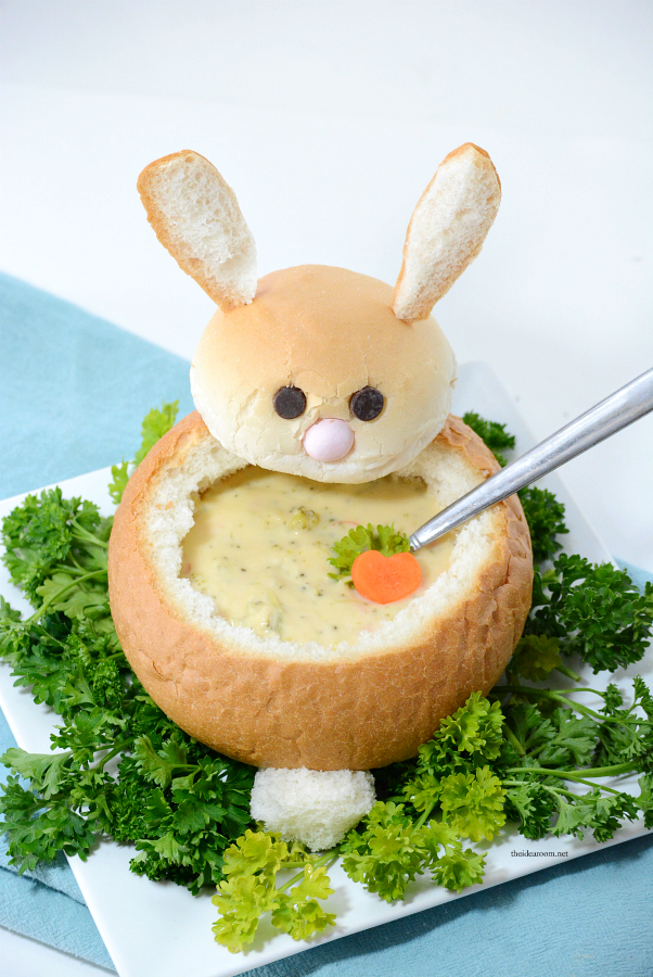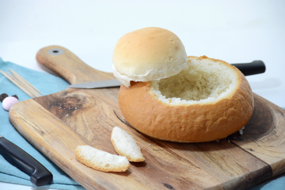 - Σκάψτε το εσωτερικό του ψωμιού αρκετά, και πάρτε το εσωτερικό του ψωμιού, ώστε να δημιουργήσετε την ουρά από το λαγουδάκι. Όσο ψωμί μείνει μπορείτε να το φάτε αργότερα με τη σούπα που μπορείτε να φτιάξετε.