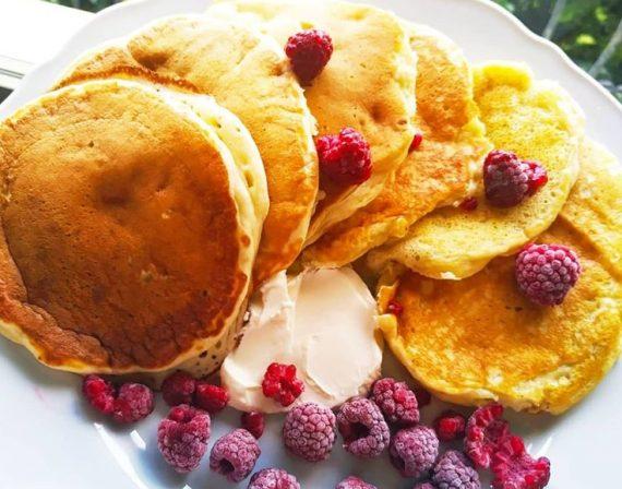 Αφράτα και πεντανόστιμα pancakes με μπανάνα και γιαούρτι, σερβιρισμενα με φιλαδέλφεια, κόκκινα φρούτα ή ότι άλλο επιθυμείτε!