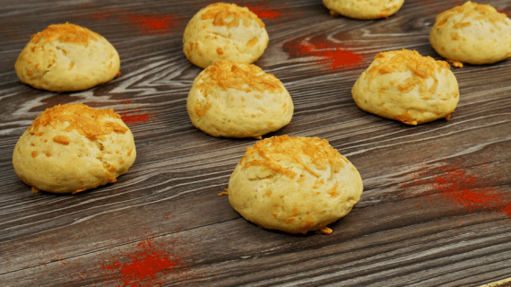 Σε ένα σκεύος βάζουμε το αλεύρι μαζί με το σιμιγδάλι, το μπέικιν, το κρύο βούτυρο και ανακατεύουμε με τα χέρια μας να πάρουν σχήμα από ψίχουλα. Προσθέτουμε λίγο αλάτι, την ζάχαρη, ρίγανη, το γάλα και αναμειγνύουμε ελαφρώς. Τέλος βάζουμε το τριμμένο κεφαλοτύρι και δουλεύουμε να γίνει ζύμη. Την πλάθουμε σε μπαλάκια και τα τοποθετούμε σε ταψί με αντικολλητικό χαρτί. Προσθέτουμε λίγο τριμμένο κεφαλοτύρι και ψήνουμε στους 200 βαθμούς μέχρι να ροδίσουν.