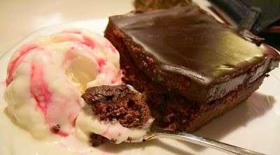 Σπάμε και λιώνουμε στο φούρνο μικροκυμάτων όλες μαζί της σοκολάτες –βάλτε τες σε ένα βαθύ γυάλινο μπολ–ανακατέψτε τες αφού λιώσουν προσοχή θέλουν λίγα λεπτά μόνο- και τις προσθέτουμε στο μίξερ που δουλεύει ακόμη. Προσθέτουμε και το αλεύρι ανακατεύοντας στην πολύ χαμηλή ταχύτητα. Βουτυρώνουμε ένα ταψάκι 30αρι και με τσέρκι καλό θα είναι που κουμπώνει ξεκουμπώνει και ρίχνουμε μέσα το μείγμα. Ψήνουμε σε προθερμασμένο φούρνο 180 βαθμούς περίπου 20μ λεπτά στον αέρα–δοκιμάστε με το μαχαίρι αν βγει στεγνό είναι έτοιμο.