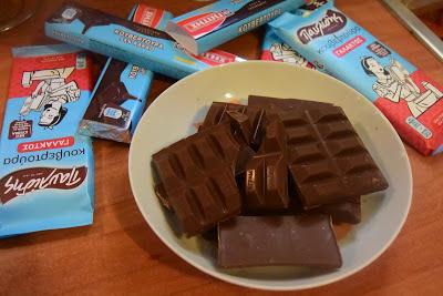 Υλικά 1 πλάκα βιτάμ 1 φλιτζάνι τσαγιού αλεύρι που φουσκώνει μόνο του 1 φλιτζάνι ζάχαρη 3 αβγά 2 κουβερτούρες των 125 γραμ έκαστη μαύρη σοκολάτα 2 κουβερτούρες των 125 γραμ έκαστη σοκολάτα γάλακτος 1/2 φλιτζάνι τσαγιού κρέμα γάλακτος