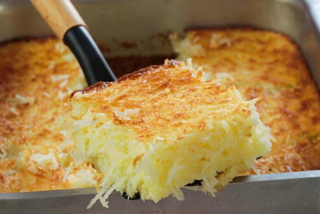 Εκτέλεση συνταγής Προθερμαίνετε το φούρνο σας στους 180 βαθμούς και βουτυρώνετε ένα ορθογώνιο πυρέξ. Σε ένα μπολ, ρίχνετε το ζαχαρούχο γάλα, τα αυγά, το γάλα καρύδας και το φρέσκο γάλα και τα ανακατεύετε καλά με σύρμα να ομογενοποιηθούν. Προσθέτετε τη τριμμένη καρύδα, ανακατεύετε να ενσωματωθεί ισομερώς και ρίχνετε το μείγμα στο πυρέξ. Το ψήνετε για περίπου 28-35 λ ή, ανάλογα με το φούρνο σας, μέχρι να πάρει ένα απαλό χρυσο-καστανό χρώμα στην επιφάνειά του.
