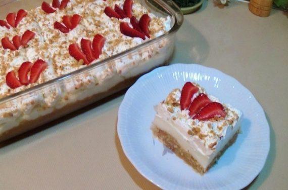 Το αγαπημένο παραδοσιακό γλυκό, στην πιο ανοιξιάτικη εκδοχή του, με Κρέμα Ζαχαροπλαστικής Τσήζκεικ ΓΙΩΤΗΣ και φράουλες.