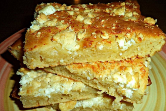 ΕΚΤΕΛΕΣΗ Ανακατεύω το αλεύρι με το γιαουρτι,τα αυγά,το αλάτι και το λάδι και προσθέτω νεράκι όσο πάρει μέχρι να γίνει ένας παχύρευστος χυλός όπως κάνουμε για τις τηγανίτες.Αδειάζω τον χυλό σε λαδωμένο ταψάκι,(κανονίζω το ταψι μου ώστε ο χυλός να μην ξεπερνάει το 1 εκ πάχος!)Πασπαλίζω από πάνω τη φέτα,ραντίζω με λίγο λαδάκι ακόμα και ψήνω στους 180 βαθμούς αντιστασεις περίπου 25 λεπτά,μέχρι να ροδοκοκκινήσει!!!