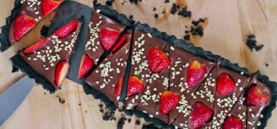 Πανεύκολη σοκολατένια τάρτα με μπισκότα oreo και φράουλες
