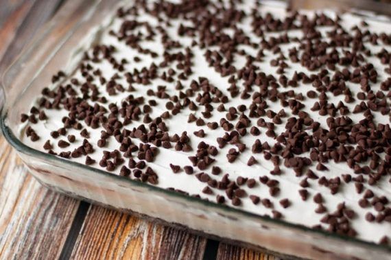 Για τη γέμιση: •225 γρ. μαλακό τυρί τύπου Philadelphia •1/4 φλ. τσαγιού κρυσταλλική ζάχαρη •3¼ φλ. τσαγιού κρύο γάλα + 2 κ.σ. επιπλέον γάλα * •500 γρ. κρέμα γάλακτος πλήρης χτυπημένη σε πηχτή σαντιγί •2 φακελάκια άνθος αραβοσίτου στιγμής με γεύση σοκολάτα •1 φλ. τσαγιού μικρές σταγόνες σοκολάτας