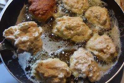Βάζετε το λάδι στην φωτιά να κάψει,έχετε ένα ποτήρι με νερό κοντά σας να βουτάτε το κουτάλι κάθε φορά και παίρνετε κουταλιές από το μείγμα τις βάζετε στο λάδι και τις γυρίζετε πολύ γρήγορα να μην μαυρίσουν και καθώς βγάζομαι τις τηγανισμένες τις αφήνουμε για λίγο επάνω σε χαρτί κουζίνας.Αν προλάβουμε σερβίρουμε γιατί εξαφανίζονται αμέσως !!!!!!!