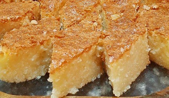 Είναι ένα σιροπιαστό κέικ που στην εμφάνιση θυμίζει λίγο το ραβανί και το φτιάχνουμε με βασικό υλικό το πρόβειο γιαούρτι, χωρίς την πέτσα του. Το σιρόπι γλυκό και μυρωδάτο κάνει την γεύση ακόμη πιο συναρπαστική. Δείτε παρακάτω την εκτέλεση της συνταγής: