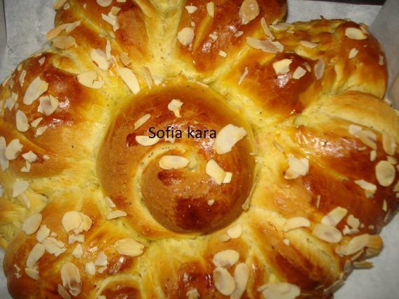 ΕΚΤΕΛΕΣΗ Προζυμι Σε μια λεκανη βαζουμε 1|2 φλ χλιαρο γαλα ,τα 2 φακ μαγια ,1κγ ζαχαρη απο αυτην που εχουμε ,και λιγο αλευρι ! Κανουμε το χυλο και περιμενουμε μιση ωρα μεχρι να διπλασιαστει! Αφου διπλασιαστει και βγαλει φουσκαλες βαζουμε ολα τα υλικα στο χυλο και ζυμωνουμε εκτος απο το βουτυρο !!!!