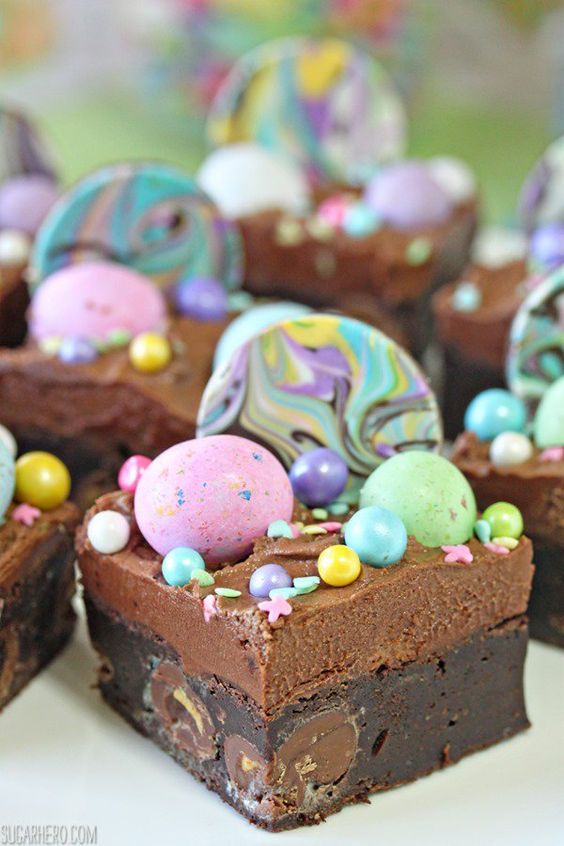 Τα brownies είναι μια πολύ καλή και εύκολη λύση για πασχαλινά κεράσματα,καθώς μπορούν να κοπούν με κουπ πατ σε διάφορα σχήματα και να στολιστούν με βουτυρόκρεμα,καραμελάκια και σοκολάτα.Το μόνο που έχετε να κάνετε είναι να φτιάξετε τα brownies της αρεσκείας σας και να αφήσετε την φαντασία σας ελεύθερη.Παρακάτω θα δείτε μερικές ωραίες ιδέες για τον στολισμό τους.