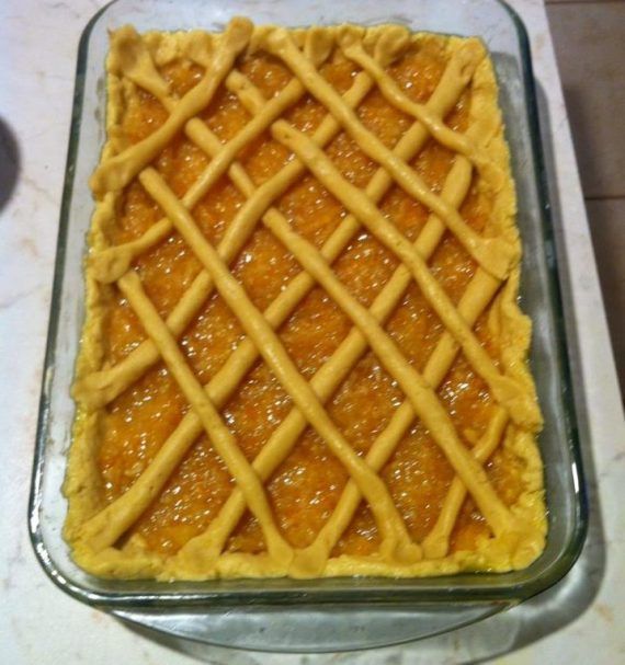 Με την μαρμελάδα πορτοκάλι εφτιαξα μια ονειρεμένη πασταφλώρα!! Συνταγή 1 φαρίνα πουφουσκώνει μόνη 1 ποτήρι αραβοσιτέλαιο ή βιταμ 2/3 φλ ζάχαρη 2 αβγά Ενα σφυνάκι κονιάκ Ξύσμα πορτοκαλι ή λεμόνι 1 κ γ μπεικιν ,λίγο αλάτι 500γραμ μαρμελάδα