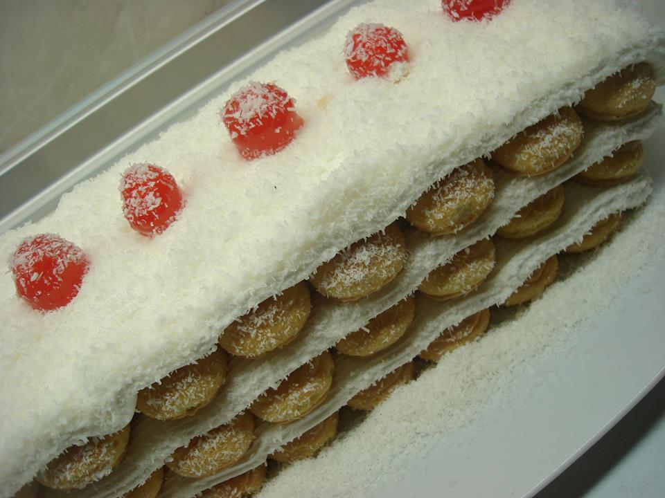 Τι κάνουμε Χτυπάμε στο μίξερ την κρέμα γάλακτος με την άχνη να γίνει σαντιγί. Σε ένα μπολ ανακατεύουμε το γάλα με το χυμό Βουτάμε 8 σαβαγιάρ στο γάλα, τα στρώνουμε σε μια πιατέλα και τα σκεπάζουμε με σαντιγί. Κάνουμε το ίδιο άλλες δυό φορές. Πασπαλίζουμε με μπόλικο ινδοκάρυδο.