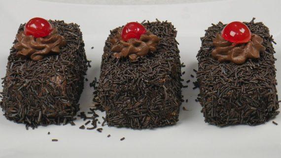 Χτυπάμε τα αυγά με την ζάχαρη να αφρατέψουν. Προσθέτουμε το αλεύρι, τις βανίλιες και ανακατεύουμε να γίνει ζύμη. Την απλώνουμε σε μεγάλο ταψί με αντικολλητικό χαρτί και ψήνουμε στους 200 βαθμούς για 15 λεπτά περίπου. Χτυπάμε την κρέμα γάλακτος σε σαντιγί και ενσωματώνουμε την χλιαρή λιωμένη σοκολάτα. Όταν το παντεσπάνι κρυώσει το κόβουμε σε ίσα ορθογώνια κομμάτια. Βάζουμε ένα παντεσπάνι για βάση και από πάνω κάνουμε μία στρώση από μους με την βοήθεια ενός κορνέ. Καλύπτουμε με ένα παντεσπάνι και στρώνουμε ομοιόμορφα μους. Σκεπάζουμε τις πάστες με τρούφα σοκολάτας. Διακοσμούμε προαιρετικά με ροζέτες από μους και μαρασκίνο.