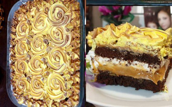 Στήσιμο… Παίρνουμε το ταψάκι που ψήσαμε το παντεσπάνι… στρώνουμε το ένα παντεσπάνι κάτω, σιροπιάζουμε καλά… αλείφουμε την καραμέλα, βάζουμε μια στρώση μπανάνες Ρίχνουμε την μισή κρέμα, βάζουμε το άλλο παντεσπάνι, σιροπιάζουμε πάλι,καραμέλα την υπόλοιπη κρέμα, γαρνίρουμε με ότι θέλουμε και το βάζουμε στο ψυγείο για τουλάχιστον 4-5 ώρες μέχρι να τις κόψουμε…