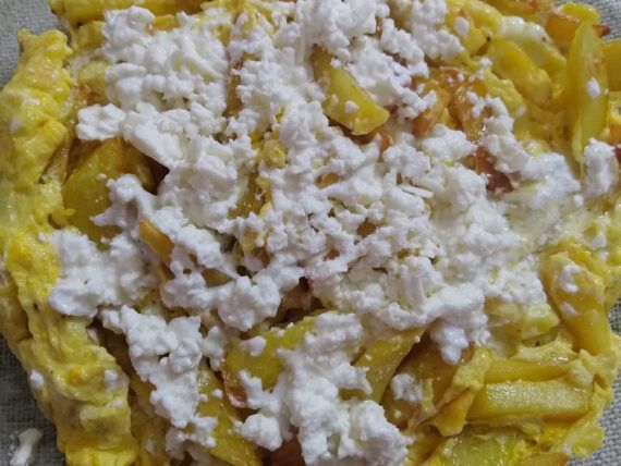 Συνταγή για πατάτες με αυγά και φέτα της γιαγιάς. Παραδοσιακή ομελέτα με πατάτες και φέτα με μόλις 4 υλικά για ένα οικονομικό, γρήγορο και εύκολο μεσημεριανό ή βραδινό από τον φίλο μας Χαράλαμπος Χρυσαφίδης.