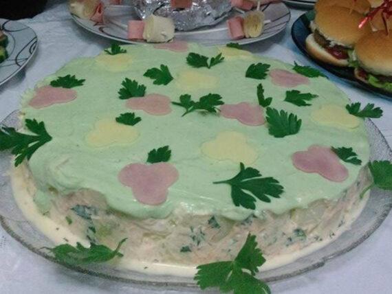 Συνταγή για πατατοσαλάτα για παιδικό πάρτι. Εντυπωσιακή πατατοσαλάτα φόρμας, που μοιάζει με τούρτα με μαγιονέζα και γιαούρτι. Τα παιδιά θα την λατρέψουν και μπορείτε να την διακοσμήσετε και με παιδικά διακοσμητικά Frozen ή Cars ή ό,τι αγαπάει το παιδί!