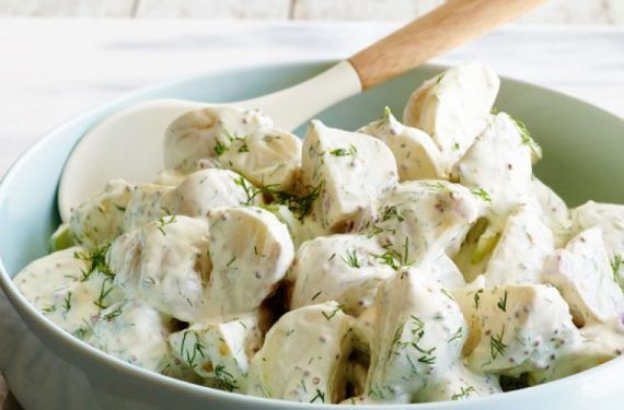 Ρίχνουμε στις πατάτες στο μείγμα γιαουρτιού.