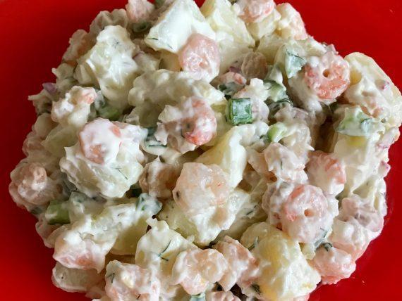 Υπέροχη πατατοσαλάτα με γαρίδες και μαγιονέζα για το επίσημο τραπέζι σας ή τον μπουφέ σας.