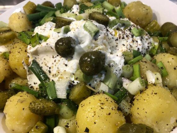 Δείτε παρακάτω την εκτέλεση για την πατατοσαλάτα με πίκλες και σώς γιαουρτιού:
