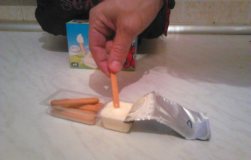 Και τι δεν είχε φτιάξει αυτή η μαμά! Σφολιατοειδή, ζυμαρικά, πίτσες, κρεατικά όλα τα καλά και υπέροχα στολισμένα! Σε μια γωνιά του μπουφέ είχε βάλει κάτι που για να είμαι ειλικρινής δεν το είχα ξανά δει….. La Vache qui rit Τυροβουτιές….. και ακολούθησε το παρακάτω σκηνικό…… τα πιτσιρίκια έχουν τρελαθεί και ακούγονται επιφωνήματα από το στόμα τους… « ωωωωωω θέλω τέτοιο….!!!!! Ααααα και γωωωωωω…..!!!! Ουάουυυυυυ….!!!!» Η Ηρώ έχει πάθει ντελίριο και καθώς κρατάει τις Τυροβουτιές με τα τραγανά κριτσίνια κάνει μακροβούτια στο λιωμένο La Vache qui rit και αρχίζει έναν μονόλογο λες και θα την πάρουν μασκότ στις Tυροβουτιές …. «Mανούλα να πάρουμε και μεις!!!!! Τέλεια!!!! Και είναι τόσο κρατσανιστά αυτά τα κριτσίνια…..και αυτό το τυράκι λιώνει στο στόμα μου!!!!!! Σε παρακαλώ, σε παρακαλώ θέλω για το σχολείο αύριο! Θέλω και στο πάρτυ μου ! Θέλω και όταν παίζω με τις ξαδέρφες μου!!! Και κοίτα τι ωραία χρώματα και σχέδια που έχει το κουτάκι τους! Και στο σχολείο δεν θα χρειάζεται να έχω μαζί μου ταπεράκι και να φαίνομαι σαν μωρό!!! Please please pleaseeeeee θέλωωωωω να μου πάρεις!!!»