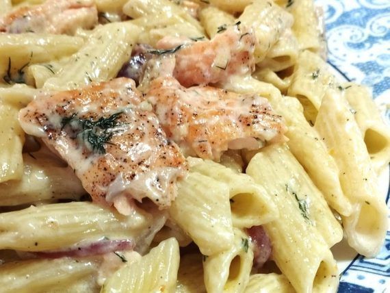 Συνταγή για πένες με κρέμα γάλακτος και σολομό για ένα νόστιμο φαγητό για όλη την οικογένεια. Μακαρονάδα με δεμένη λευκή σάλτσα και σοταρισμένο σολομό να τρώει η μάνα και του παιδιού να μη δίνει. Απολαύστε την με λευκό κρασί.