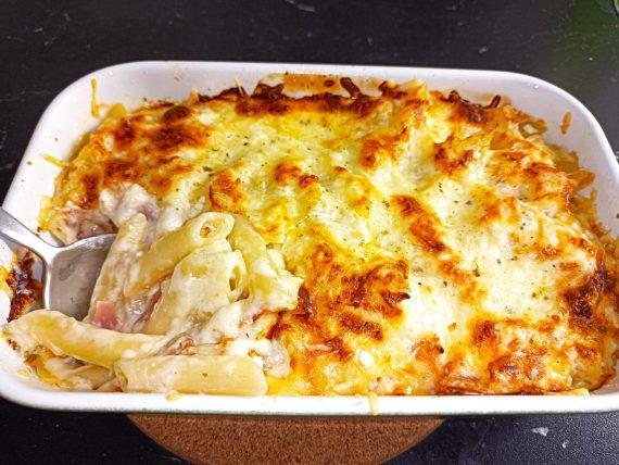 Αν ψάχνετε το ιδανικό φαγητό το τέλειο ορεκτικό για την Τσικνοπέμπτη αλλά και για κάθε γιορτινό μπουφέ τότε σας βρήκαμε το τέλειο φαγητό. Πένες στο φούρνο με κρέμα γάλακτος με τριμμένο κεφαλοτύρι, τριμμένη γκούντα και μπέικον.