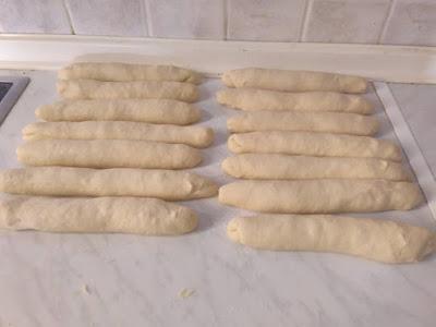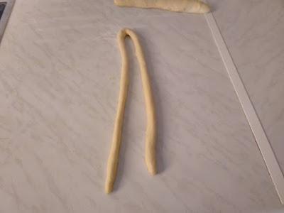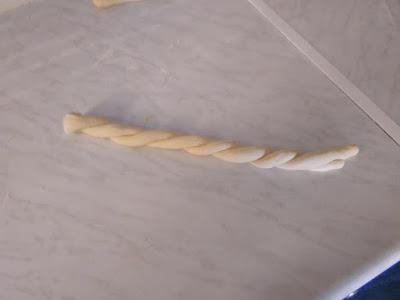 Αφού ξεκουραστούν 5 λεπτά ανοίγουμε πάλι σε κορδόνι 50 εκατοστά μήκος . Το διπλώνουμε στην μέση και στρίβουμε.