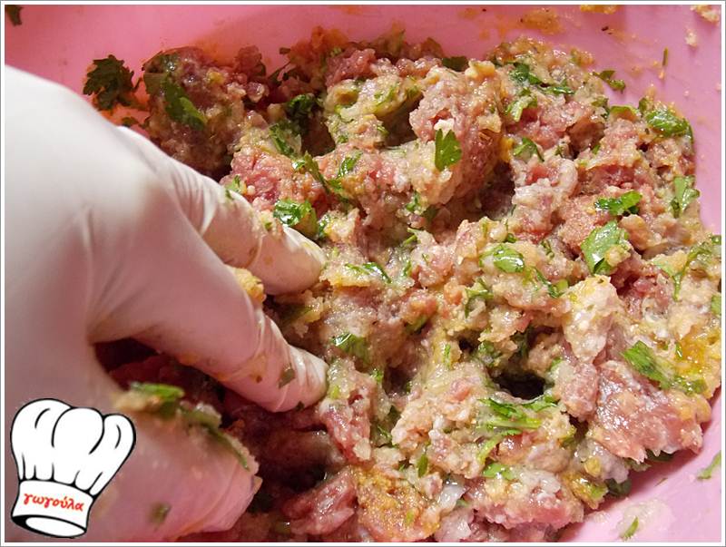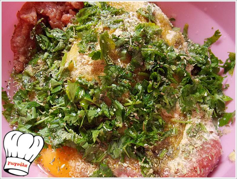 κιμα μοσχαρισιο – 500 γρ κρεμμυδι – 1 ξερο τριμμενο σκορδο – 1 -2 σκ. ψιλοκομμενες αβγα – 1 φρυγανια τριμμενη – 4 κ.σουπας γεματες μαιντανο – ψιλοκομμενο δυοσμο – φρεσκο κατα προτιμηση αλατι mix πιπεριων – φρεσκοτριμμένο ελαιολαδο