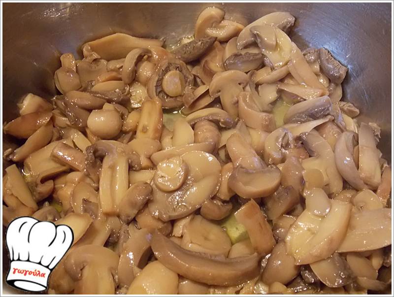 Σε κατσαρολιτσα βαζουμε ελαχιστο ελαιολαδο και σωταρουμε ελαχιστα τα μανιταρια.
