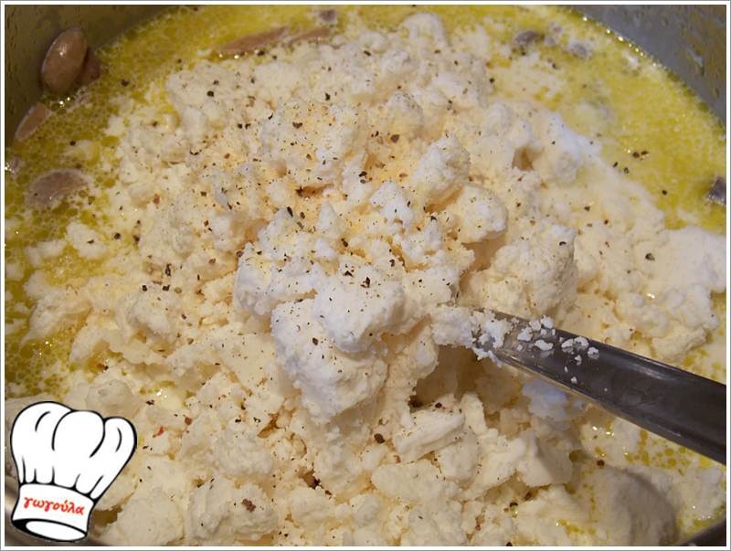 μανιταρια – 230 γρ. τεμαχισμενα κονσερβας γκουντα – 50 γρ.τυρι η΄οποιο αλλο κιτρινο τυρι φετα – 240 γρ. τριμμενη σκορδο – 1 κ.γλυκου σε σκονη κρεμα γαλακτος – 200 ml γαλα – 100 ml φρεσκο αλατι mix πιπεριων – φρεσκοτριμμένο μοσχοκαρυδο – λιγο κορν φλαουρ – 2 κ.γλυκου διαλυμενο στο γαλα ελαιολαδο – λίγο