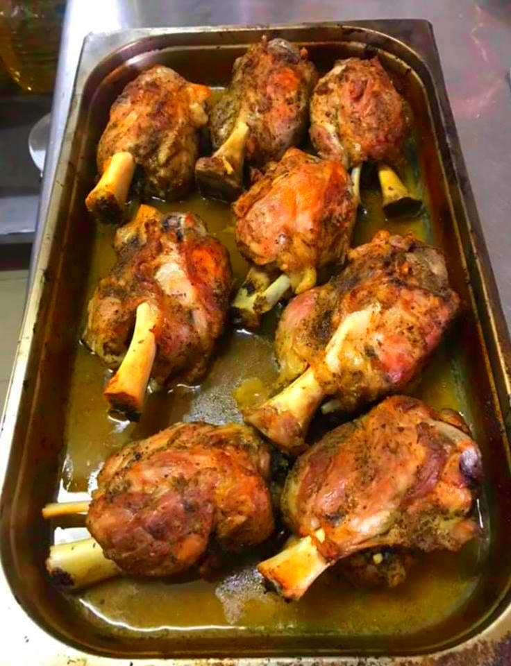 Κότσια Φτιάχνουμε με όλα τα υλικά μια μαρινάδα και τοποθετούμε τα κότσια σε ταψί ή γάστρα . Τα περιχύνουμε με το υλικό τρίβοντάς τα προσθέτουμε και μισό ποτήρι νερό ζεστό και τα σκεπάζουμε ή με το καπάκι της γάστρας ή με λαδόκολλα και ψήνουμε σε θερμοκρασία 180 βαθμούς μέχρι να τσιμπήσουμε με το πιρούνι και να δούμε ότι το κρέας είναι μαλακό.
