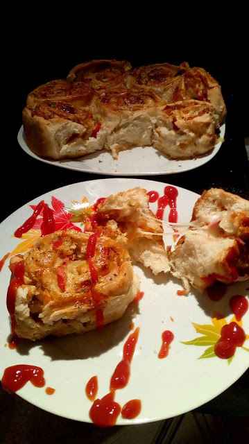 Βάζουμε στο μπολ μια μέτρια κούπα γάλα χλιαρό φρέσκο,2 κουταλιές της σούπας γιαούρτι απο θερμοκρασία δωματιου,25 γραμμάρια μάγια νωπή,2 κουταλιές της σούπας σπορελαιο και τα ανακατεύουμε με πηρούνι. Συνεχίζουμε ρίχνουμε 4 μισή κούπες μετρίου μεγέθους αλεύρι ζυμωνουμε. Σκεπαζουμε την ζύμη για 40 λεπτα.