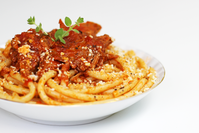 Αρνάκι κοκκινιστό με μακαρόνια