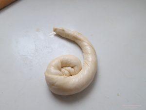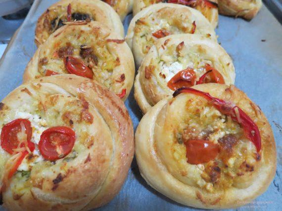 Σαλιγκαράκια ζύμης γεμιστά με ότι έχουμε η νοστιμιά είναι στη ζύμη σπάνε τα φύλλα στο στόμα από γεύση το αφήνω σε σας…εγώ είχα στο ψυγείο, λαχανικά φούρνου με τυριά…καταλάβατε όταν λέω ότι υπάρχει στο σπίτι…δεν πετάμε τίποτα!!! Όταν έρχομαι στη Σουηδία στα παιδιά μου έχω πολύ ελεύθερο χρόνο, λείπουν πολλές ώρες στις δουλειές τους κι εγώ εξασκώ το χόμπι μου…έχω κοινό εδώ…χαχαχα… για κατανάλωση!!! Μου αρέσει να τους νταντεύω…ότι τους λείπει απο την Ελλάδα και δε από τη μαμά …προσπαθώ όσο μπορώ να τους αποζημιώνω!!! Μπαίνουν και κατάψυξη …για να με θυμούνται καμιά Κυριακή πρωί…